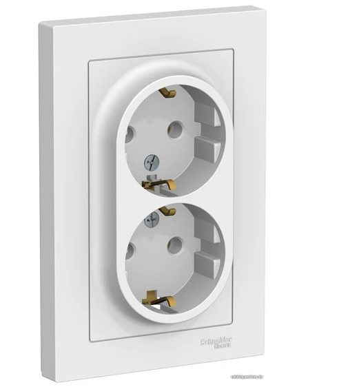 Розетка двойная с заземлением 16А, в сборе, белый
