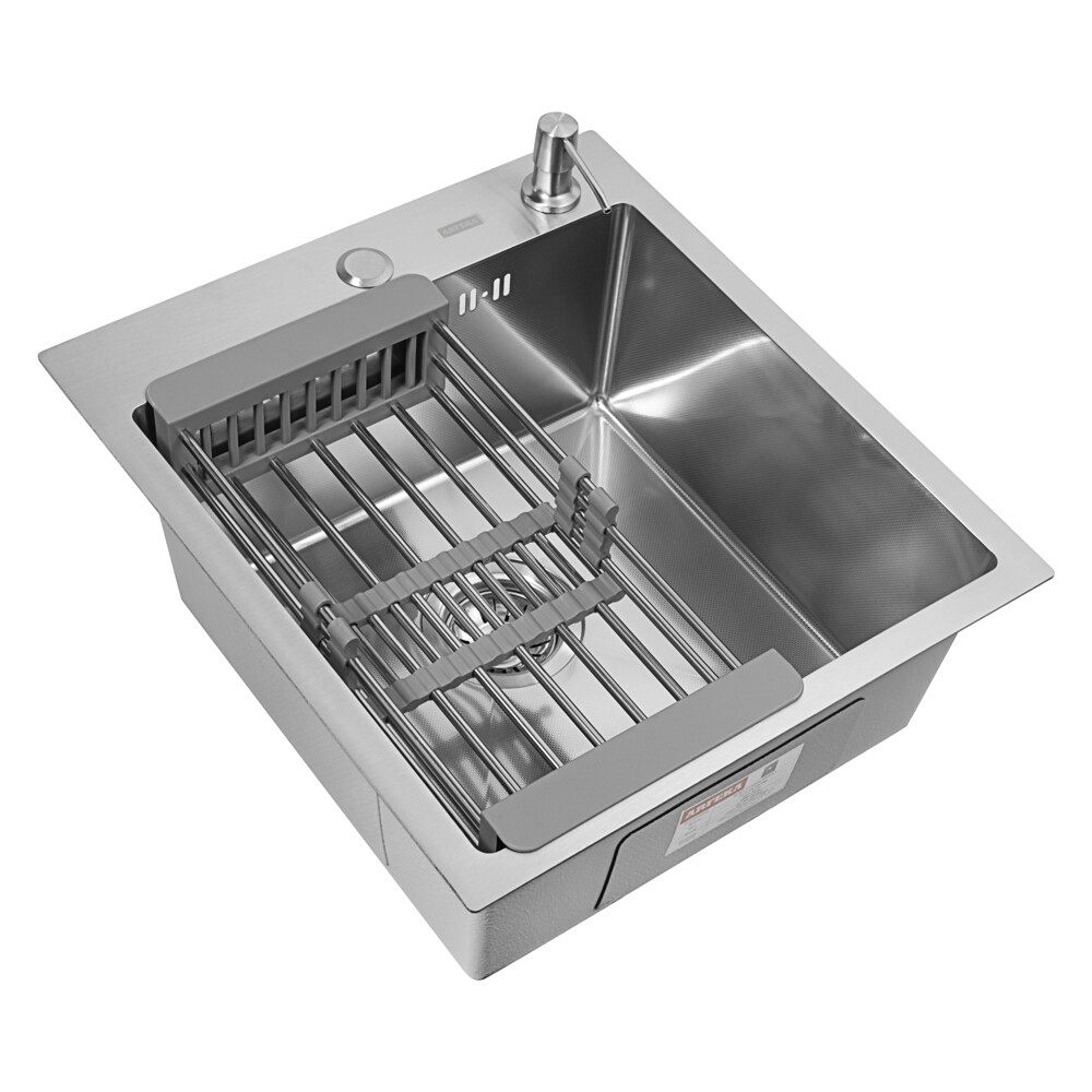 Комплектация: | Кухонная мойка, телескопический коландер, дозатор для жидкого мыла, сливная арматура |