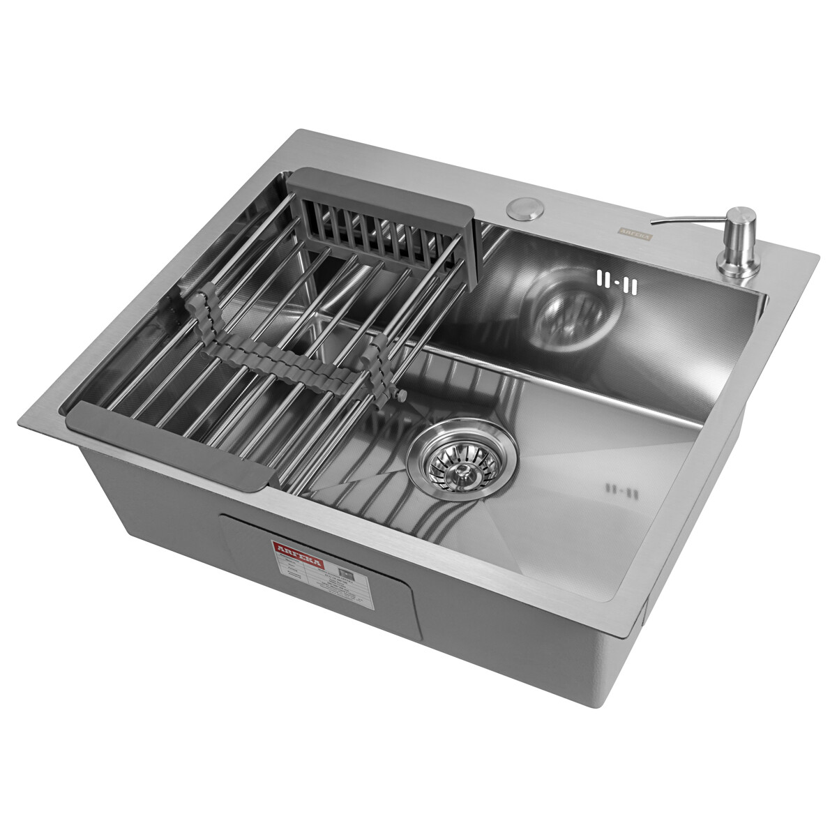 Комплектация: | Кухонная мойка, телескопический коландер, дозатор для жидкого мыла, сливная арматура |