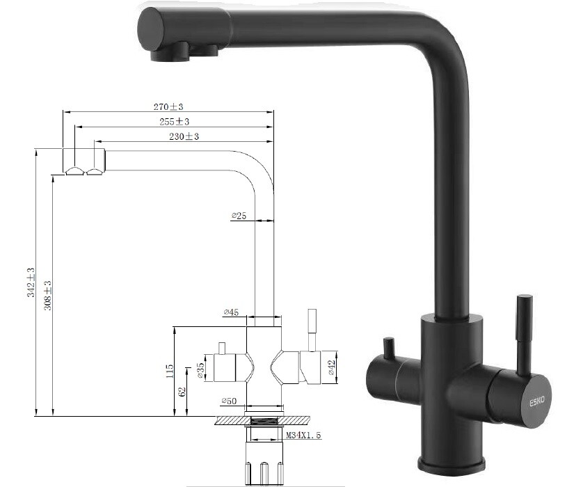Esko Смеситель д/кухни, R-излив, Black, с подключением к фильтру, арт. K24 B