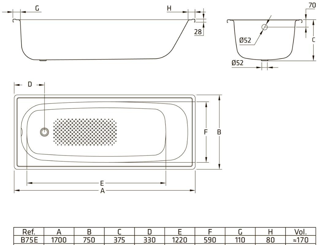 BLB Europa SG ванна стальная 170х75