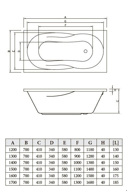 - Длина ванной