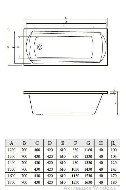- Высота ванной