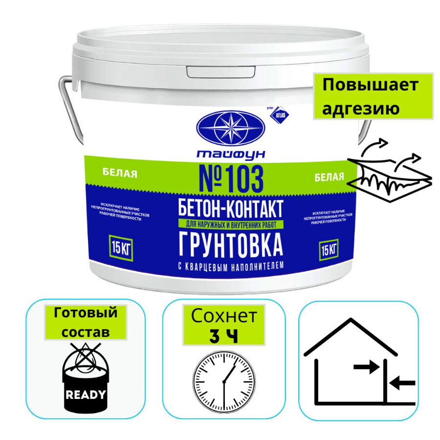 Тайфун Мастер №103 "Бетон-Контакт" грунтовка белая с повышенной адгезией, ведро, 15 кг.