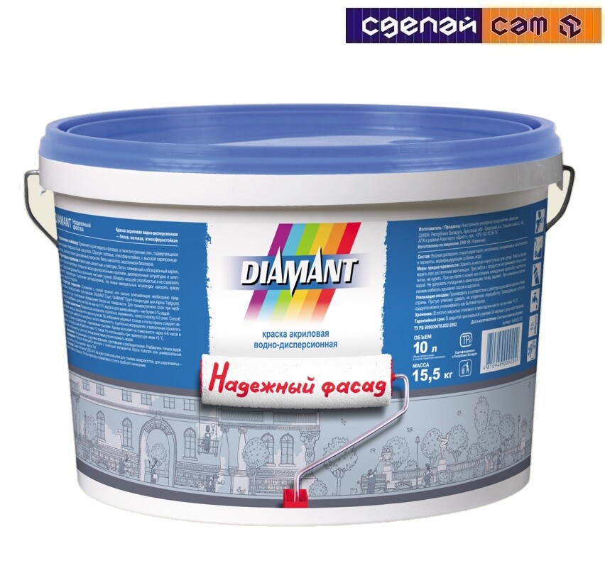 Краска акриловая в/д белая Diamant Надежный фасад 15,5 кг
